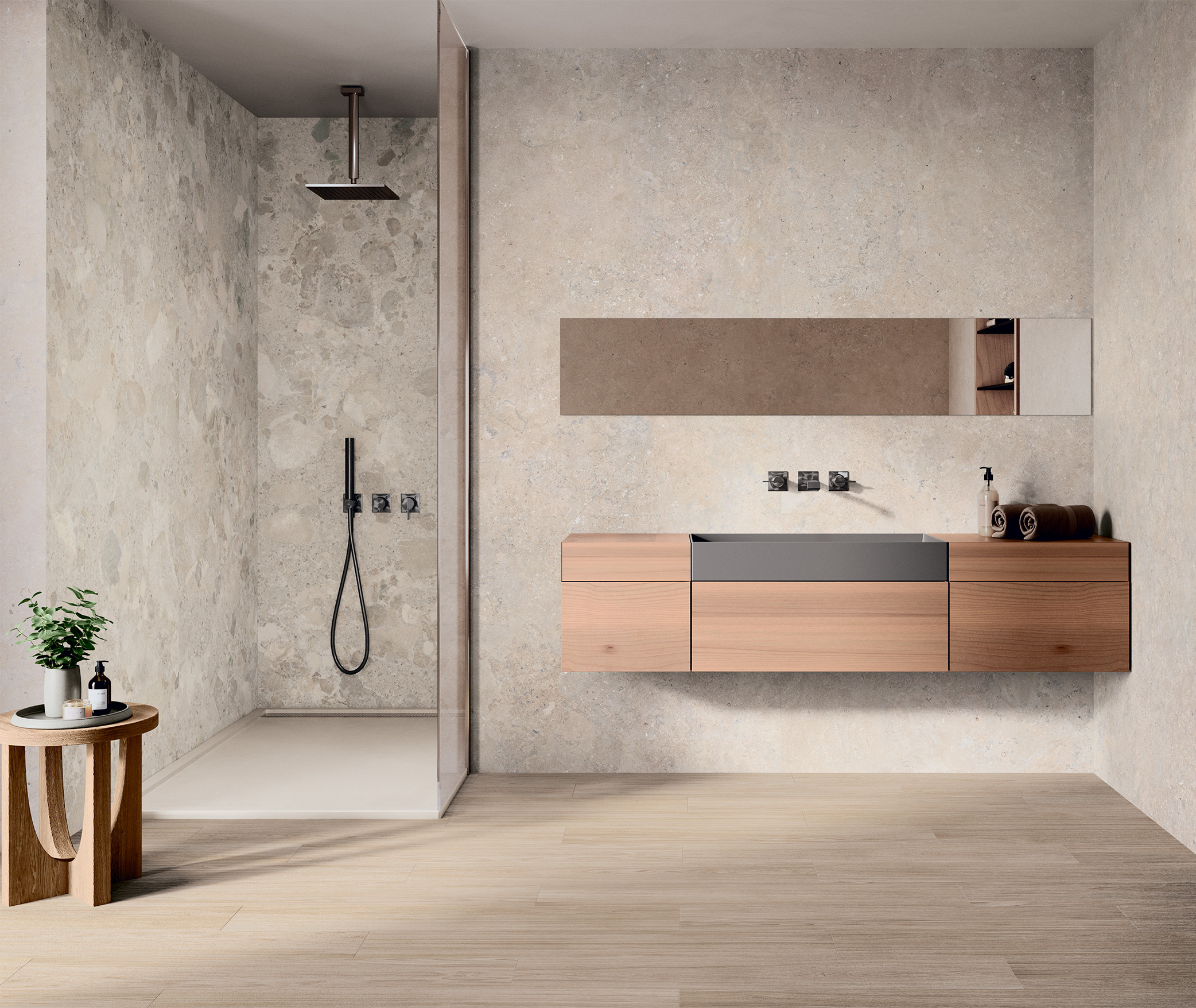 Если плитка имитирует натуральную поверхность (камень, дерево), то чем больше каждая плитка будет отличаться по тону, насыщенности цвета, активности рисунка - тем более естественно будет смотреться итоговый результат.